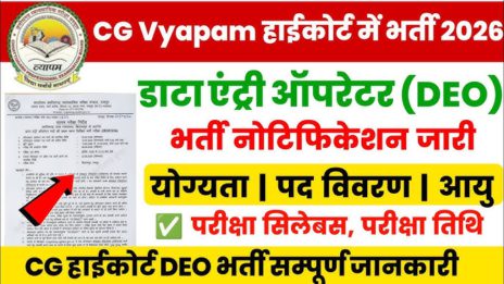 CG Vyapam Data Entry Operator Bharti 2026: छत्तीसगढ़ व्यापम (CG Vyapam) द्वारा छत्तीसगढ़ उच्च न्यायालय बिलासपुर के अंतर्गत डाटा एंट्री ऑपरेटर...