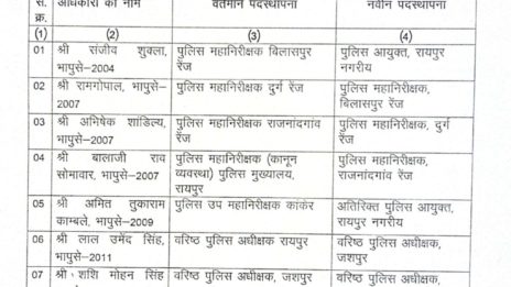 नवा रायपुर: छत्तीसगढ़ सरकार ने प्रशासनिक सर्जरी करते हुए भारतीय पुलिस सेवा (IPS) के 15 अधिकारियों का तबादला आदेश जारी किया है। राज्य शासन द्वारा...