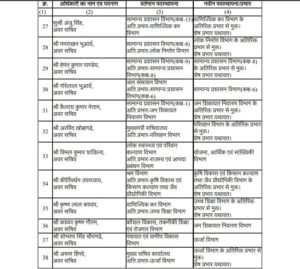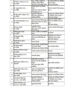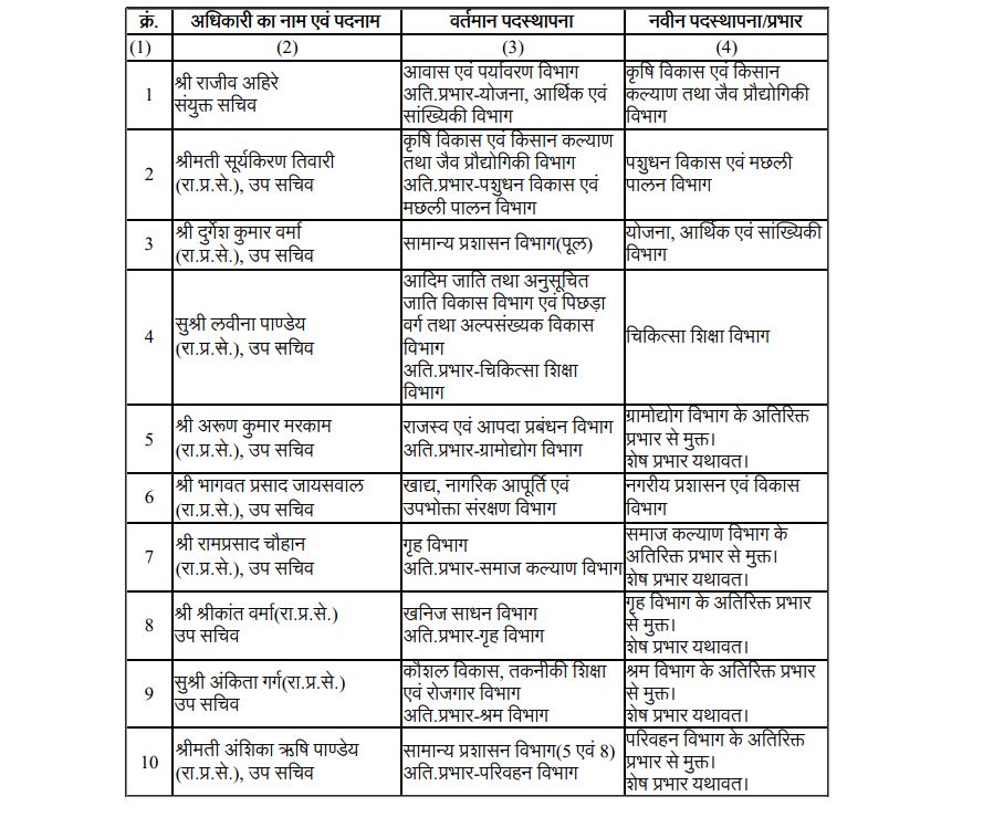 तबादला सूची में कई अधिकारियों को उनके मौजूदा अतिरिक्त प्रभार से मुक्त किया गया है, जबकि उनका मूल प्रभार यथावत रहेगा-
