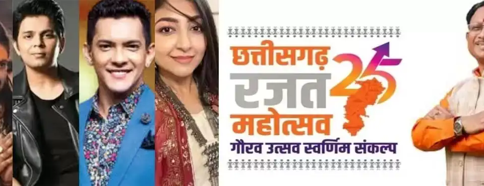 रायपुर, छत्तीसगढ़ राज्य की स्थापना के रजत महोत्सव में देश एवं प्रदेश के प्रसिद्ध कलाकारों द्वारा मनमोहक सांस्कृतिक कार्यक्रमों की प्रस्तुति दी जाएगी। एक नवम्बर से 5 नवम्बर तक मुख्यमंच के अलावा शिल्पग्राम मंच पर भी विभिन्न सांस्कृतिक कार्यक्रमों का आयोजन होगा। राज्योत्सव में इस बार छत्तीसगढ़ के लोकप्रिय कलाकारों के साथ ही देश के जाने-माने कलाकार, श्री हंशराज रघुवंशी, श्री आदित्य नारायण, श्री अंकित तिवारी, श्री कैलाश खेर, सुश्री भूमि त्रिवेदी अपनी शानदार प्रस्तुति देंगे।