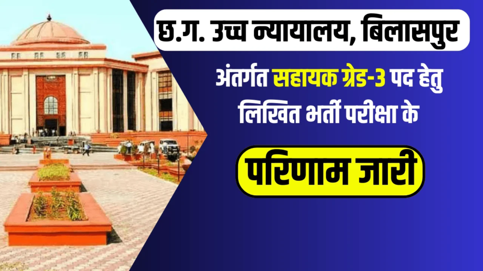 • महत्वपूर्ण सूचना: कौशल परीक्षा की तिथि, समय और प्रवेश पत्र की जानकारी जल्द ही हाईकोर्ट की आधिकारिक वेबसाइट https://highcourt.cg.gov.in पर अपलोड की जाएगी।