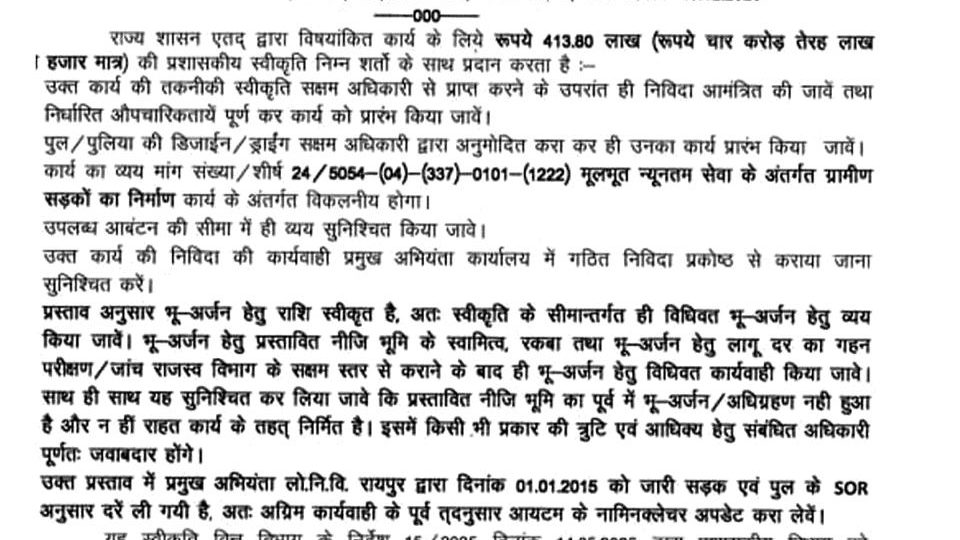 • विभाग: लोक निर्माण विभाग (PWD), छत्तीसगढ़ शासन।