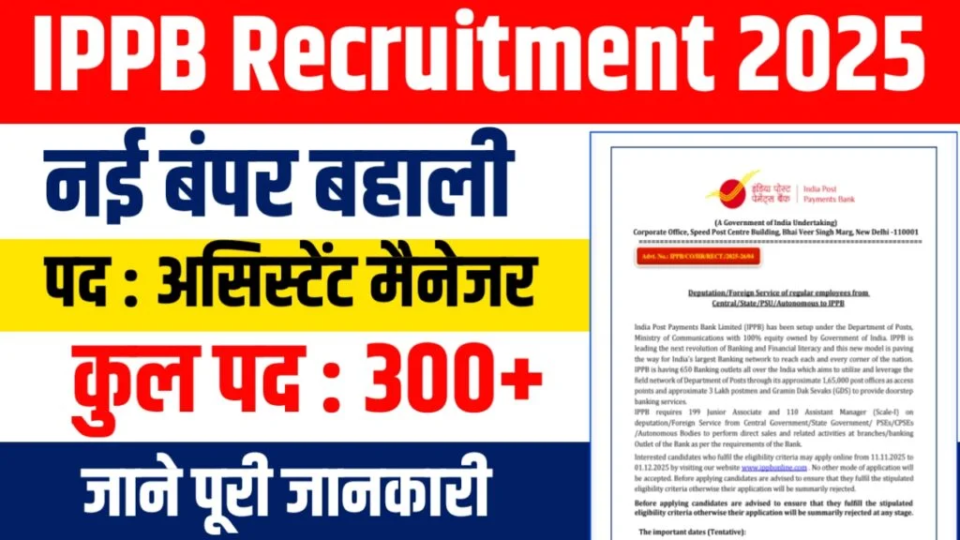 IPPB Recruitment 2025: ग्रेजुएट उम्मीदवारों के लिए मौका, इंडिया पोस्ट पेमेंट बैंक में 309 पदों पर निकली भर्ती