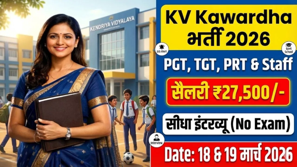 KV Kawardha Vacancy 2026: बिना परीक्षा सीधी भर्ती! PGT, TGT, PRT के लिए इंटरव्यू, सैलरी ₹27,500
