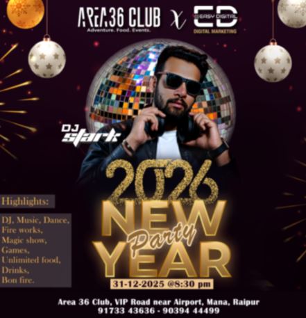 नीचे दी गई पार्टियां 31 दिसंबर 2025 की रात रायपुर में सबसे ज्यादा चर्चा में रहने वाली हैं।