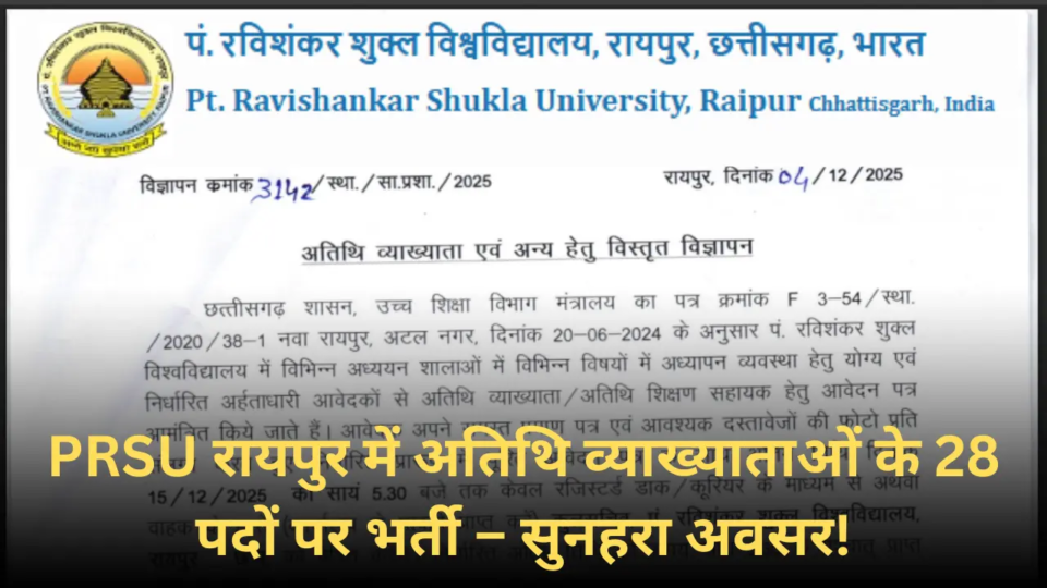 पद का नाम          – PRSU रायपुर में अतिथि व्याख्याता भर्ती 2025