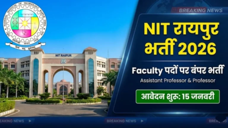 NIT Raipur Recruitment 2026: राष्ट्रीय प्रौद्योगिकी संस्थान (NIT) रायपुर ने विभिन्न विभागों में फैकल्टी पदों (शिक्षक भर्ती) के लिए विज्ञापन जारी...